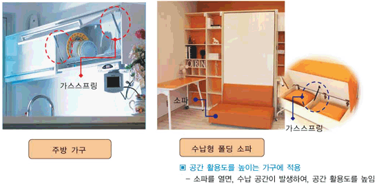 - 2. 선반을 열고 닫을때, 필요로 하는 외력의 일정 부분을 담당함으로서, 선반의 원활한 작동에 도움을 준다.
