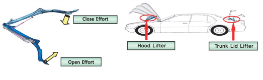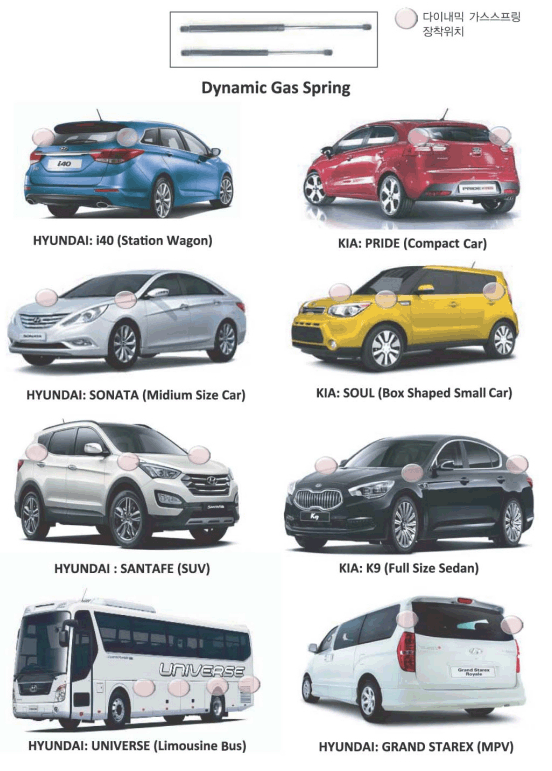 - 2. 도어를 열고, 닫을때 필요로 하는 외력의 일정 부분을 담당함으로써, 원활한 작동에 도움을 준다.